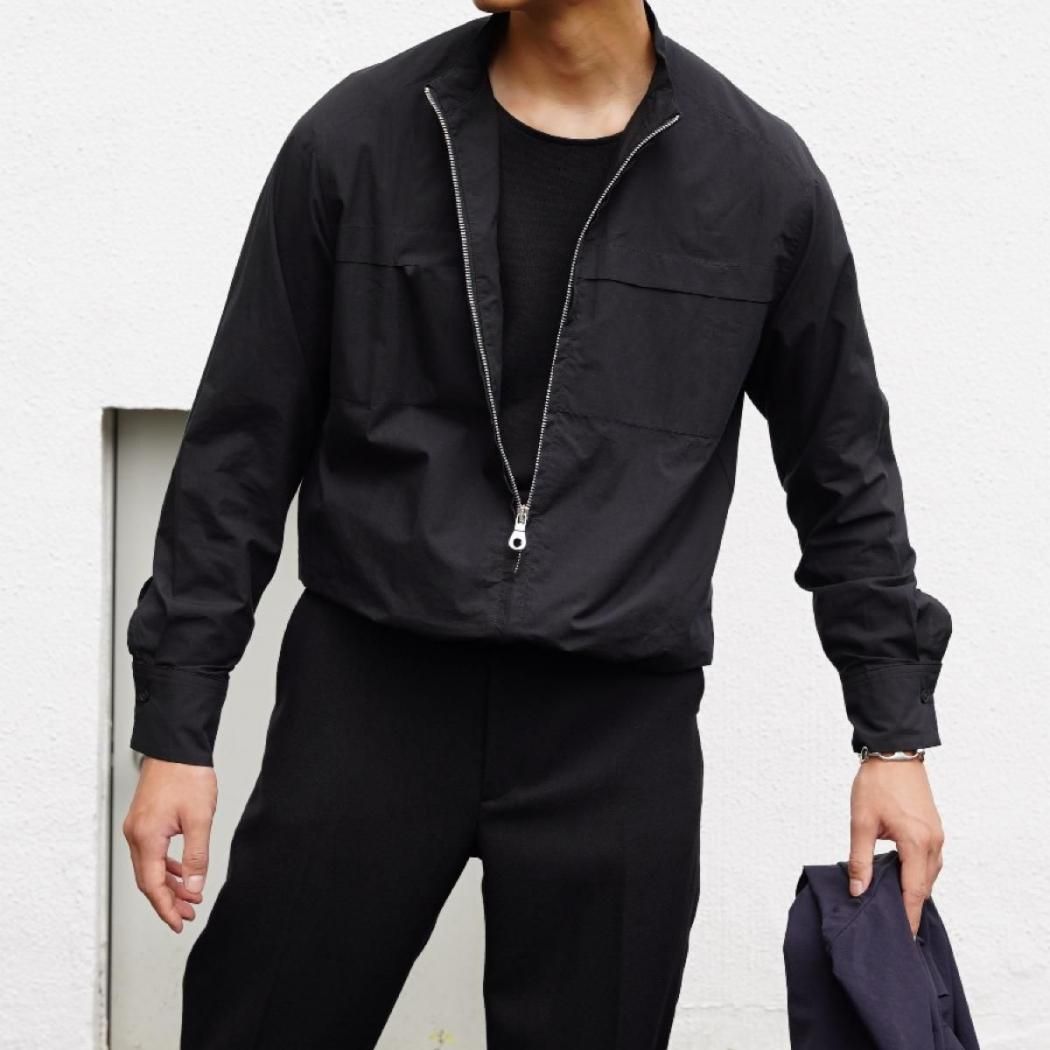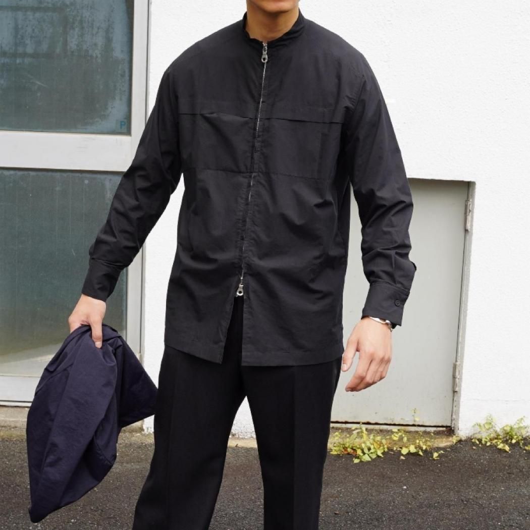 デザインと一体化されたパッチポケット、比翼のように隠されたダブルジップ仕様がシンプルで洗練された印象を与えます。