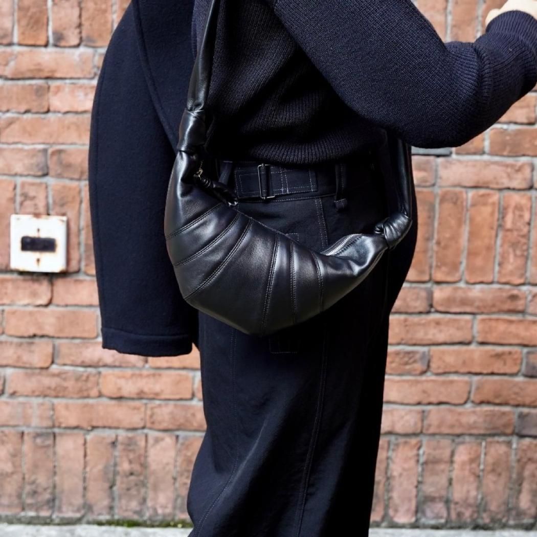クロワッサンペストリーの形からインスピレーションを得たこのバッグは、トップステッチを施したカットアウトの組み立てによって仕上げられ、スタイルと機能性が見事に融合しています。
