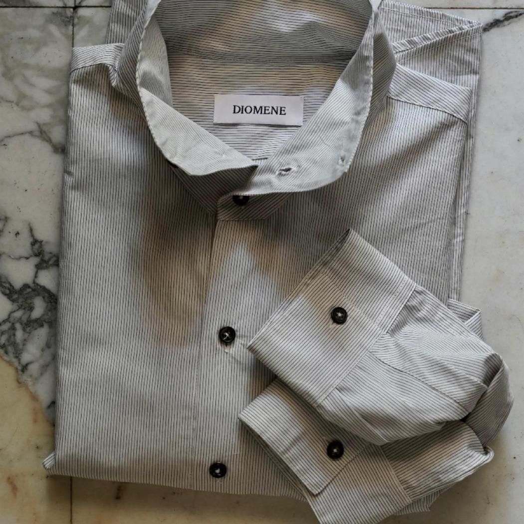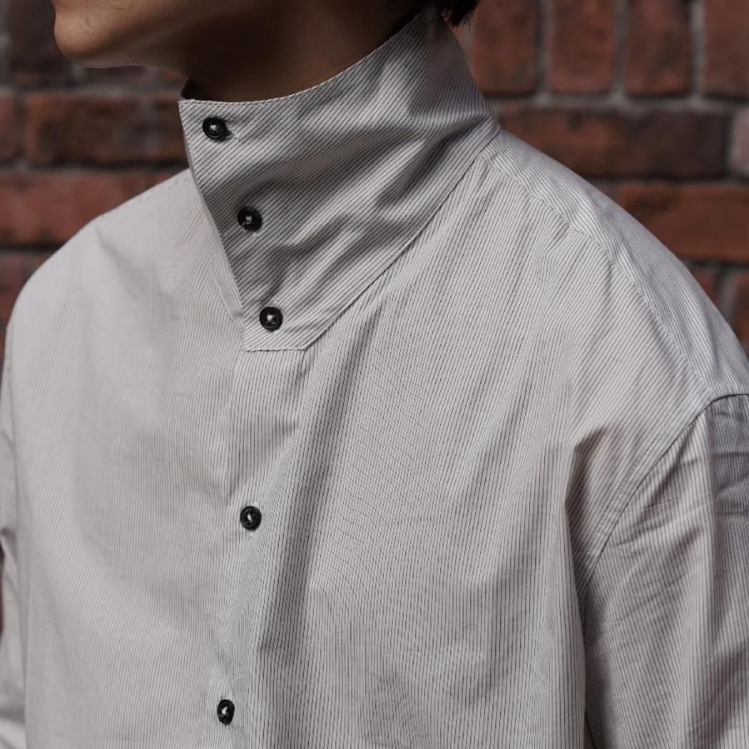独特のカッティングでデザインされたスタンドカラーが印象的です。