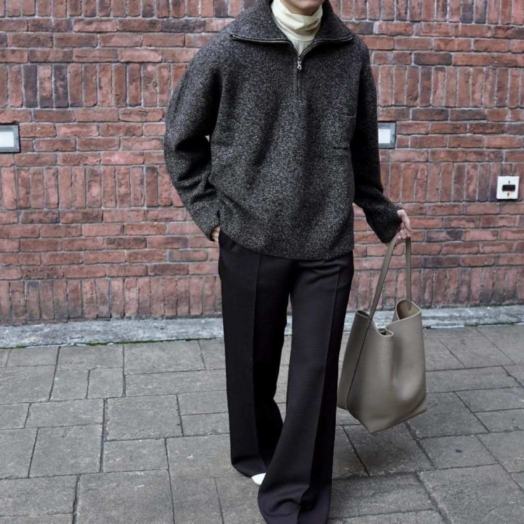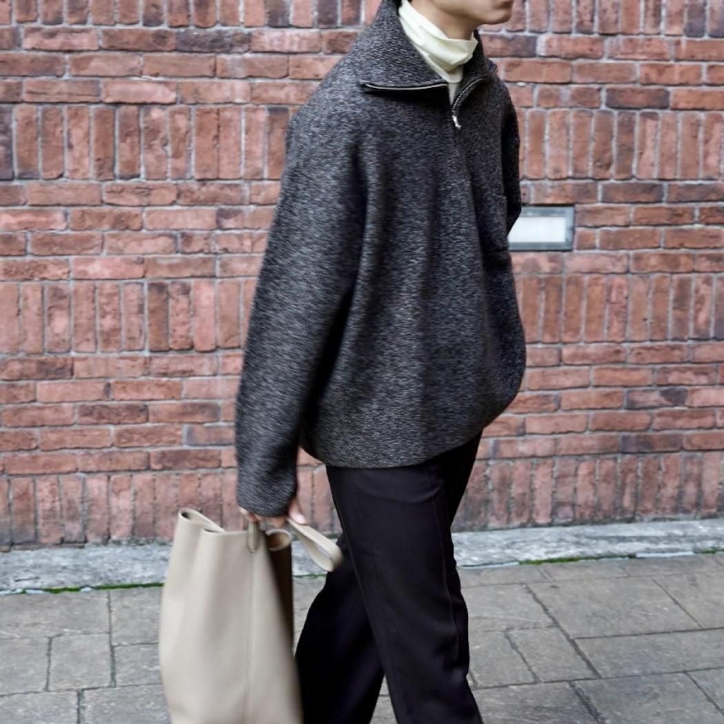 ハーフジップを特徴としたオーバーサイズニット。