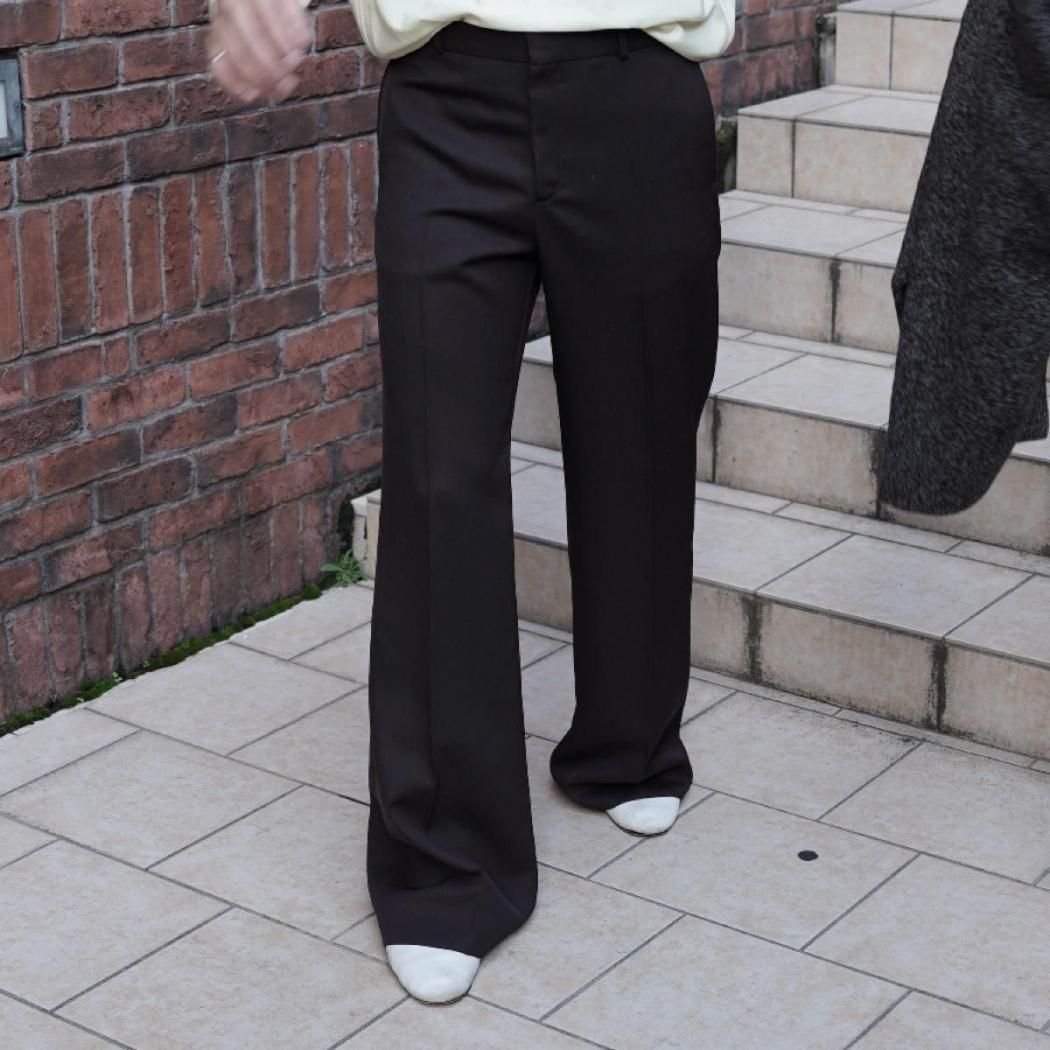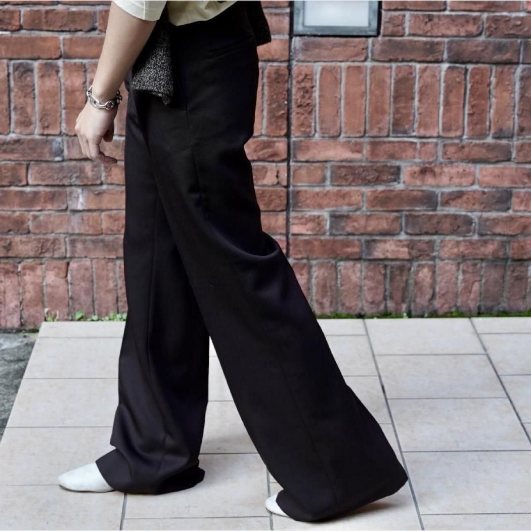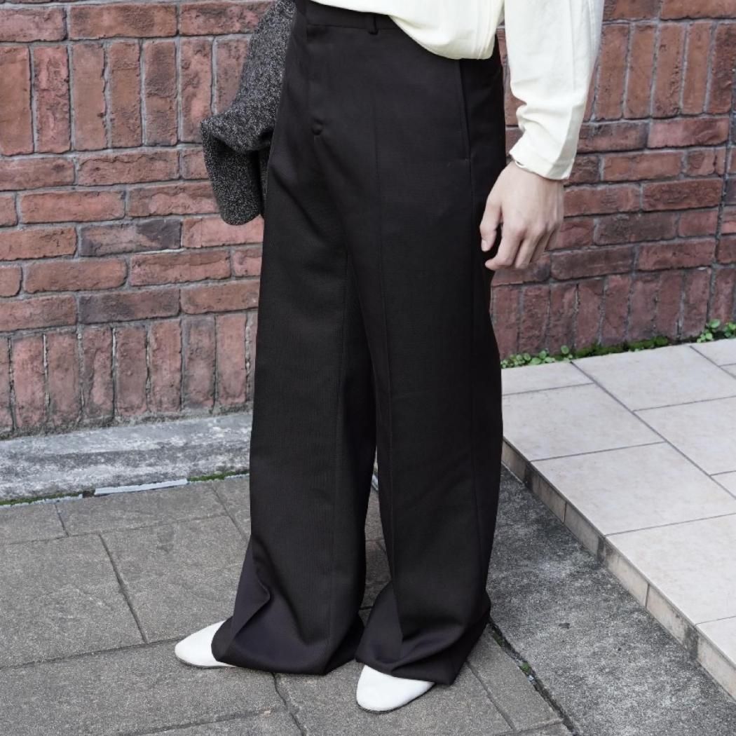 上質なイタリアのハイツイストウール生地で作られたテーラードパンツ。